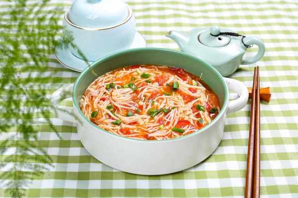 食材:番茄,金针菇,豆腐,葱,姜,植物油,盐。