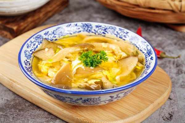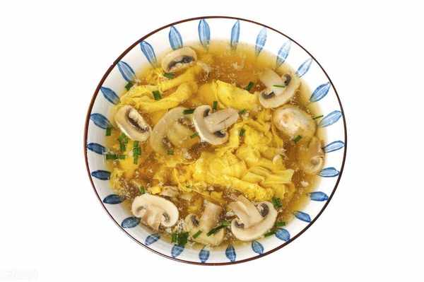 3.锅里面加入清水,烧至沸腾,把蘑菇放入煮三分钟,然后沿着锅边轻轻的淋上鸡蛋液。