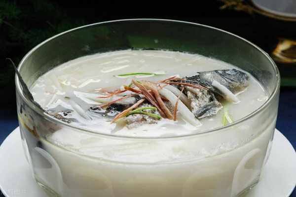 3.水的用量要超过鲫鱼,然后放入姜和葱结,盖上盖子煮30分钟。
