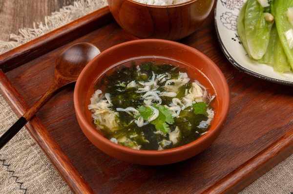 食材:紫菜,鸡蛋,盐,香油,葱,姜,鸡精,香菜,十三香。