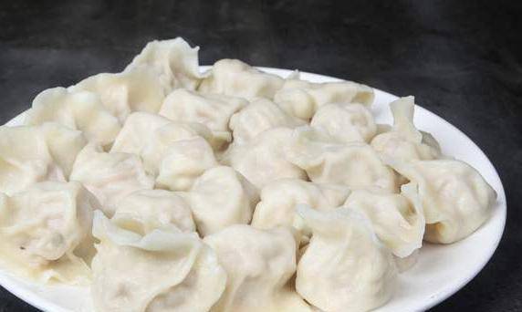 取适量萝卜肉放在皮中间,用力揉搓揉成饺子,锅里放冷水,烧开,撒一勺盐拌匀,下饺子。轻轻搅拌,将饺子煮熟,即可上桌。