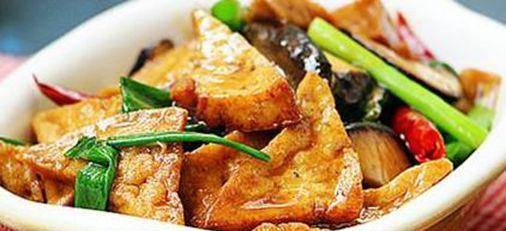 配料:北豆腐、干香菇;胡萝卜、生抽、盐