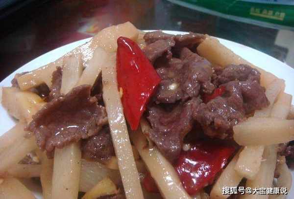 操作方法:1、锅中倒入清水用旺火烧开,牛肉洗净切条,加入姜片倒入开水;