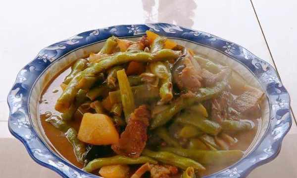 然后放入盆中,用清水洗净。你应该知道,在做这道乱七八糟的炖菜时,斑豆是重头戏。它们虽然不好看,但是很有营养,而且做出来之后,颜色也是翠绿的,很是养眼。