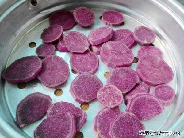1.紫薯洗净去皮切薄片,蒸熟,用开水烫一下,用大火炖10分钟左右,至筷子容易扎透即可。