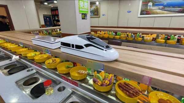 还有个进一步提高旋转小火锅送餐效率的办法,那就是配备智能送餐小火车。海誉科创有自己的智能送餐小火车生产线。智能送餐小火车,可在原先的旋转小火锅回转线上加设专用的行进轨道,外形、大小、播报语音等均可定制。小火车可一次运送多份菜品,快速精准直达,送餐完毕自动返回后厨。进一步省去了由服务人员上锅底的步骤,智能送餐小火车能根据餐位序号运送锅底和其他单点菜品,送餐效率提高的同时,也有助于旋转小火锅店其他方面的服务质量提升。