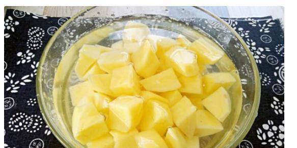 稍有做菜经验的人都知道,只要我们用刀切开,切面会在短时间内变色,由浅变深,最后变成深褐色或黑色。所以土豆切好后,要选一个干净的锅,将土豆放入锅中,用清水泡一下,防止氧化。