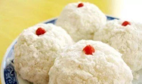 特点:色泽雪白,形如球状,质地粘软,口味香甜。