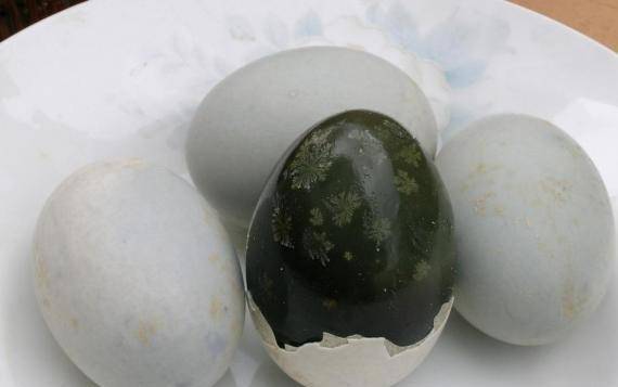 吴江“八坼皮蛋”已经有了数百年的历史。在制作“八坼皮蛋”时,将新鲜的鸭蛋放入事先配制好的料液缸中,料液配方由一定量的纯碱、生石灰、无机盐和水等组成,封缸浸泡25—35天后出缸,出缸后的鸭蛋成为可食用的松花蛋。