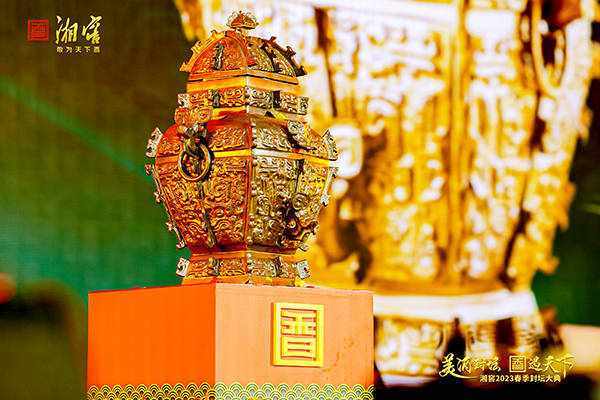 红网时刻新闻3月18日讯(记者 杨淑华)2023年3月18日,「湘窖·青铜罍」文创封坛酒在国家AAAA级旅游景区——湘窖生态文化酿酒城正式发布。