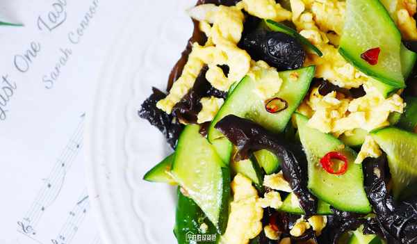 1.将木耳提前用清水泡发,黄瓜洗净切片备用