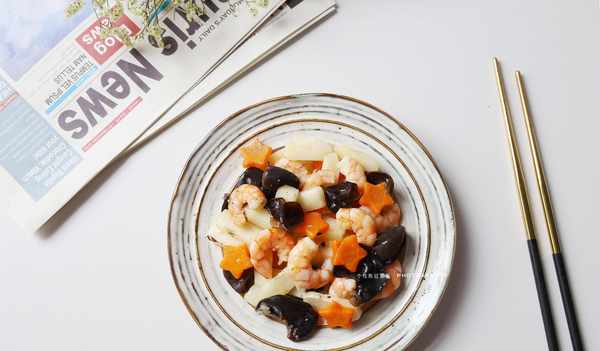1.把荸荠去皮切成厚片,泡水去除表面淀粉;木耳泡发,胡萝卜切片备用