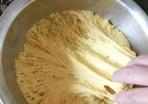 4、醒发至两倍大,有明显蜂窝组织后,给面团排气,继续揉搓,至光滑面团。