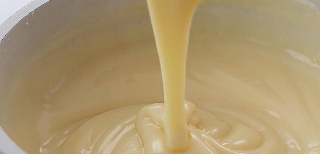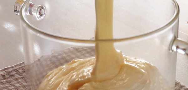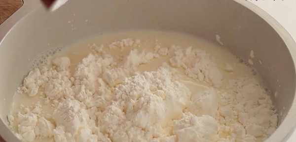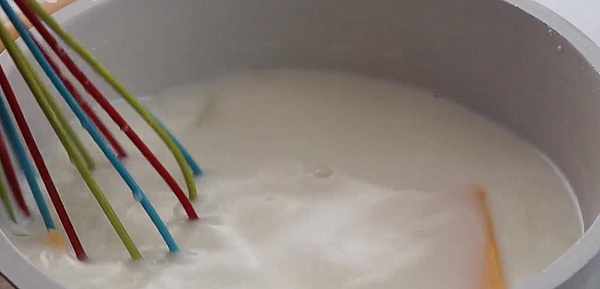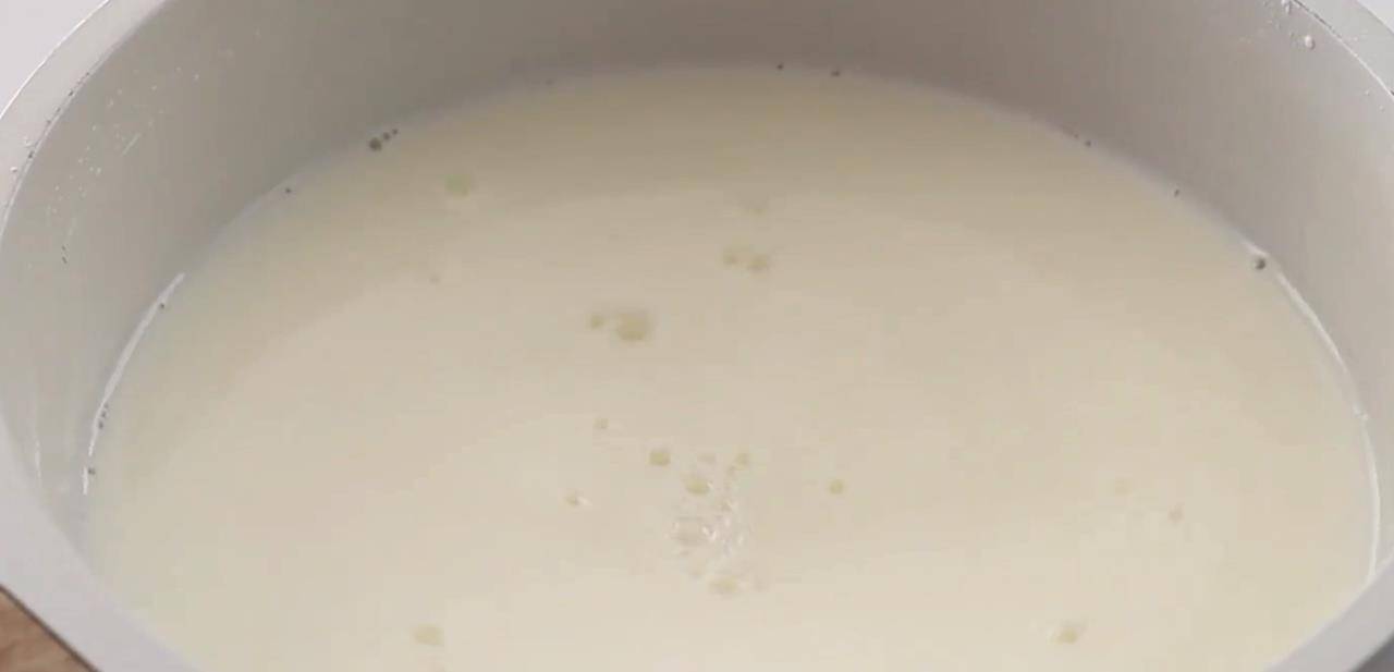 1.600毫升纯牛奶放入平底锅中,往里面倒入50克白糖,60克玉米淀粉。