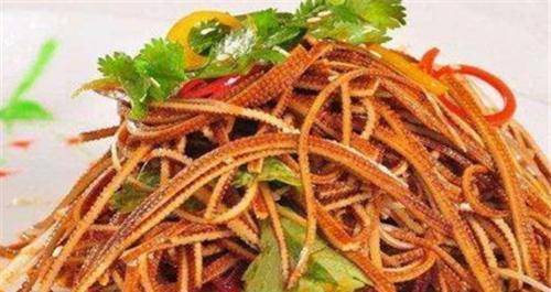 做法:1.豆腐丝切块待用