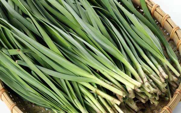 ②、好吃的韭菜根部粗壮,而且拿起韭菜表面没有多余水分,拿着韭菜根部,韭菜的叶子能够直立,这样的韭菜是新鲜的,但是叶子松垮塌陷,则说明韭菜不新鲜。