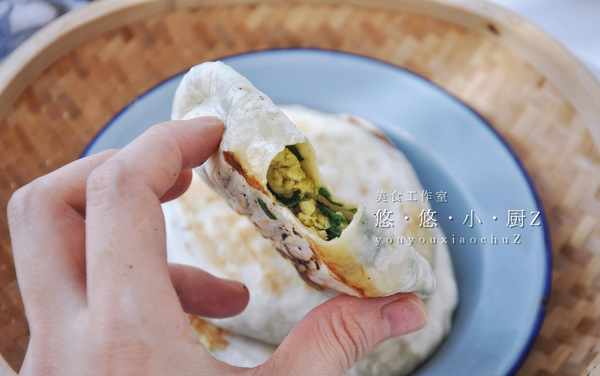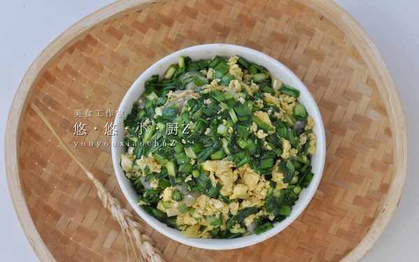 ——注意:如果你的胃不好,但又想吃韭菜,可以把韭菜切碎,放在煎鸡蛋的锅里,把韭菜炒熟,这样做出来的馅饼再吃,不会烧心反胃。