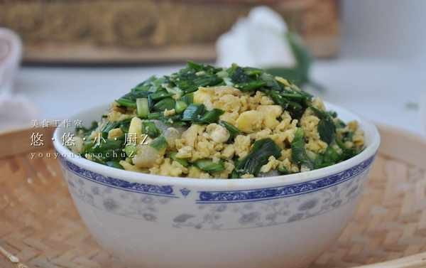 【主料】:韭菜 1把、虾仁 10个、鸡蛋 3个