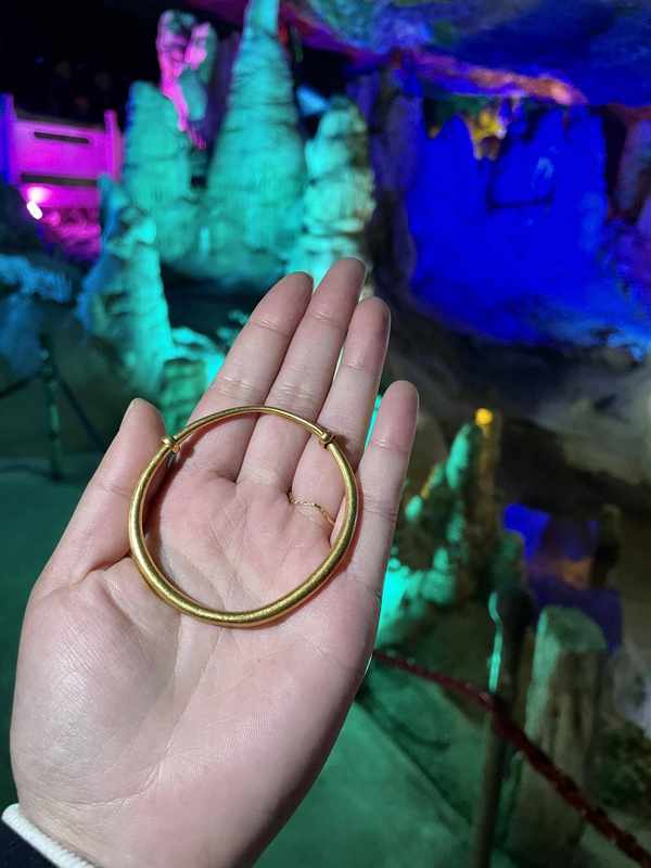 据了解,汤杏杏是景区网络主播,3月2日上午,她在溶洞内直播工作的时候,看到地上有一只金手镯,就拍了照片发到景区工作群里通知广播站寻找失主。没过多久,景区也收到了游客谭女士的寻物请求。谭女士反映,她游览途中脱外套时,不慎将金手镯弄丢,直到在返程的途中才发现。