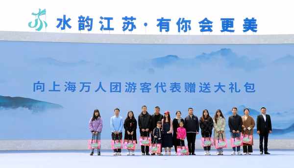 现场,长三角地区旅行社代表宣读倡议书,13个设区市为“水韵江苏·百名旅行商踩线”活动代表授旗,在现场游玩的上海万人团游客代表获赠“乐游无锡”大礼包。