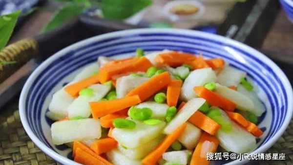 5、将胡萝卜放入锅中,拌匀,再将山药放入锅中翻炒均匀。