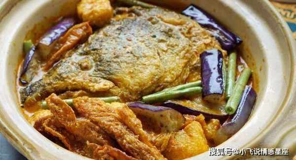 成份:鱼头、茄子、豇豆、腐竹、豆腐叶、咖喱鱼、姜黄粉、盐、椰奶、辣椒酱、小葱、蒜头、红辣椒、干红辣椒、虾酱、油