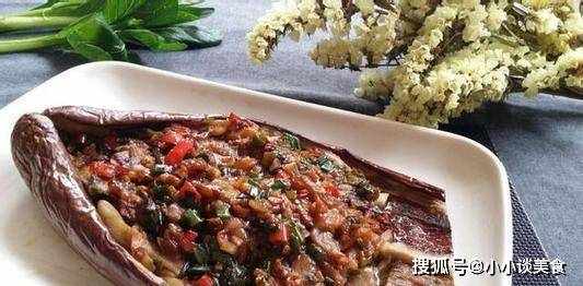 材料:茄子约300克,叉烧约100克,葱末1/2杯,红辣椒1个,青椒1个。