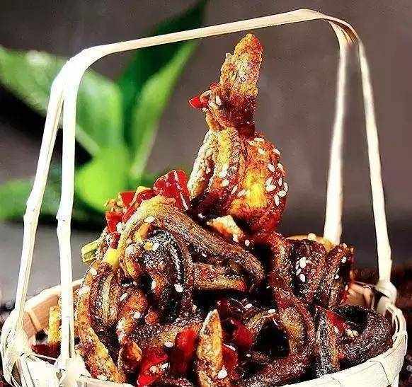 2.锅内放红油,加入干辣椒、花椒、香油、鸡精、味精、芝麻炒香,加入炸好的秋刀鱼翻炒均匀,盛起装盘.