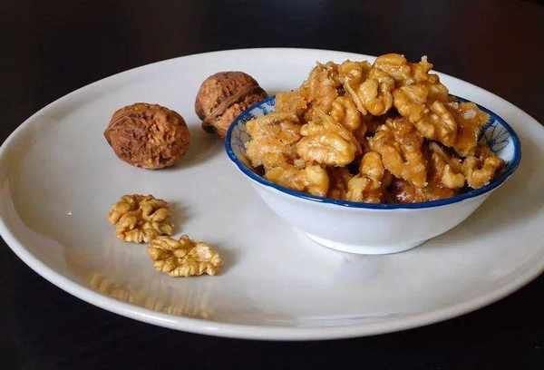 6.小火慢炖;给坚果上色并涂上糖浆;就是这样;