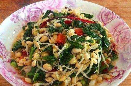配料表:黄豆芽、菠菜、胡萝卜、洋葱、大蒜、盐、鸡精、红辣椒、油、香油准备:1.豆芽洗净去皮,胡萝卜洗净切豆芽大小的方块,菠菜洗净切2厘米长的段,葱蒜切碎;红辣椒洗净切丝;