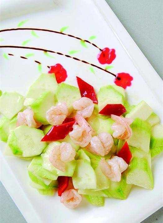 材料:虾、西葫芦、盐、鸡精、胡椒粉、葱花