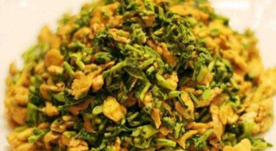 5.等鸡蛋稍微成型一点,再翻炒,直到鸡蛋全部成型,锅里能散发出香椿雅的香味。