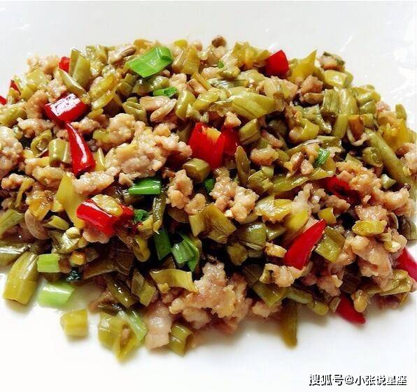3.另起一口锅,不放油,直接把酸菜末的水份煸干盛出备用