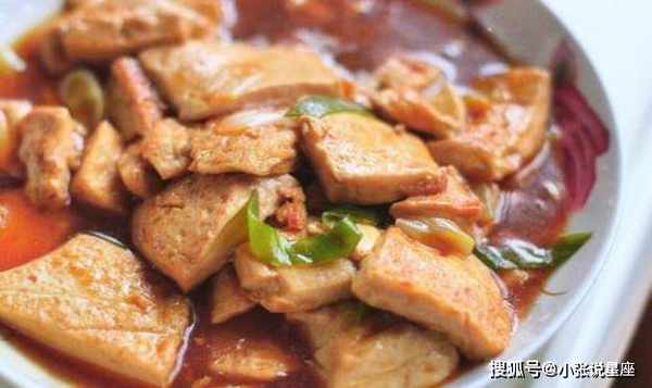 3、锅中留底油下入姜片煸香,然后下入煎好的豆腐,翻炒均匀,下入大葱;
