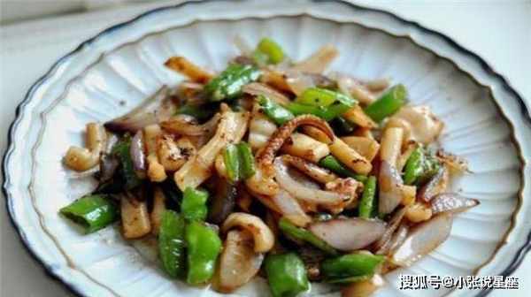 食材:鱿鱼须,黄豆酱,辣豆瓣酱,红洋葱,味达美,白糖,盐,孜然粒