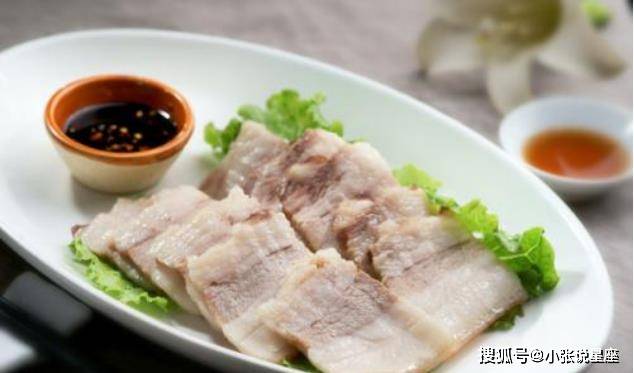 3、煮熟后取出五花肉稍微晾下至不烫手后,切成大小一致的片装盘。