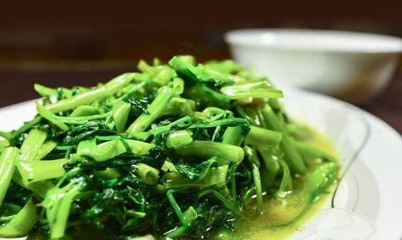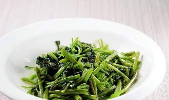 这是要注意的第二个关键技术。炒空心菜时,加少许食用油。食用油可以覆盖菠菜并保持其翠绿色。