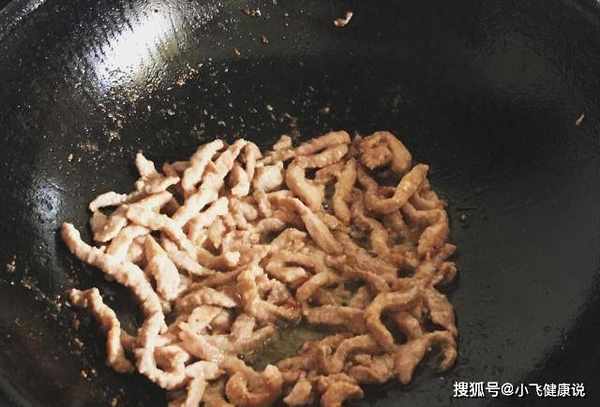 2、肉腌好后,我们就可以下锅煎了。这时,油温也很重要。炒肉应该用热油还是冷油?正确的做法是先把油烧热,70%热后关火,把油冷却到30%热,开火加入肉条翻炒。这种方法叫做平底锅烤,这样炸好的肉不容易粘在平底锅上。