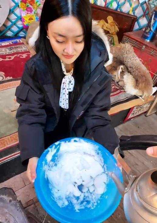 其实在草原上,不像我们一样有自来水管,他们的水源是十分缺乏的,获取水的最快方法,就是出门舀一盆雪,回来用牛粪马粪等烧开当水源喝。