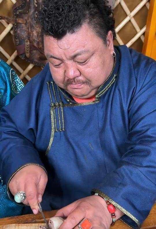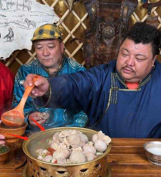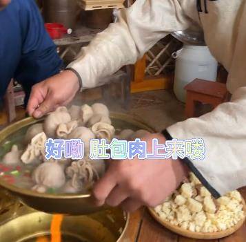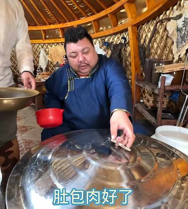 恩克带的肚包肉也成为了网红小吃,不少人光是看着恩克吃,口水就忍不住流下来,圆滚滚的肚包包裹着大块羊肉,想想就十分肥美。
