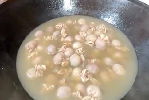 近期,恩克又做了一大锅肚包肉,掀开锅子里面是一个个圆滚滚的肚包肉,每一个都非常饱满,锅子里的水没有完全煮开,肚包肉还泛着微微的血红色,可见还没有完全熟,恩克把这些肉捞出来,又放到了第二个小锅子里。