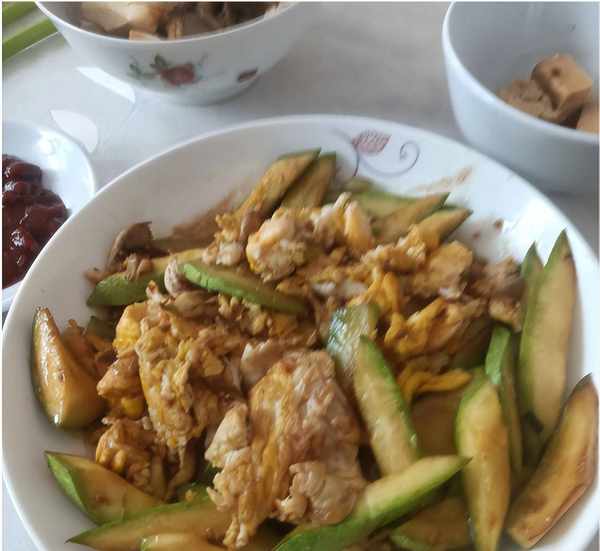 因为来客人了,所以山东同事又去炒了一个鸡蛋,大块的鸡蛋搭配美南瓜,香味十足,可以直接吃也可以蘸酱吃,不过大哥也太实在,居然打了五个鸡蛋,一看就很豪气。还有他昨天去买的猪头肉,因为已经吃了一顿,所以不多了,只有几片,不过也算是个硬菜,软糯入味,卤香味十足,QQ弹弹的有嚼劲。