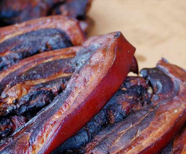 这种办法在食物匮乏和生活条件相对不太好的时代,极大地丰富了餐桌的食材,但也只有在逢年过节,祭祖和贵宾来访的时候,才会动用臭猪肉,至少每天看着灶台上方自家的那头整猪,心里就不慌,好像拥有了宝藏一样。