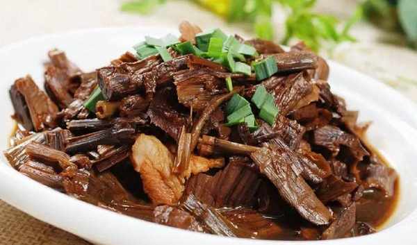 拿制作好的烟笋和上好的五花肉在一起炒也是一道别具风味的佳肴。因为烟熏的缘故,笋内的鲜味被炭火猛烈的攻势下完全激发出来。再加上五花肉一起炒制,成菜吃上去气质独特,鲜而不腻。是一道十分下饭且令人久久不能忘怀的美食。