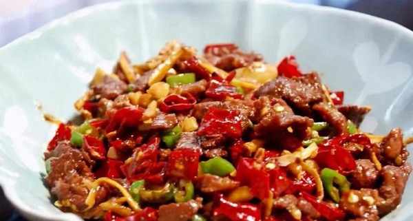 它用黄牛肉和青红辣椒佐以胡椒粉,生抽等调味料爆炒而成。但是做的时候得注重猛火快炒,以锁住牛肉的汁水。
