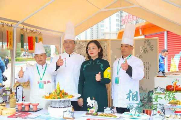 南谯板栗烧鸡、天长秦栏卤鹅、来安雷官板鸭、定远梅鱼……一道道“硬”菜让现场的市民游客品味到了滁州味道。“醉美滁州欢迎您,好味滁州等着您”滁州市文化和旅游局局长杨茜发出热情邀请。