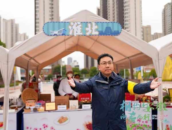 宿州的美食展位被洁白的梨花装点得清新脱俗,碗盆里的龙湖醉鱼、萧县羊肉汤热气腾腾,又增添了许多烟火气。鱼鲜飘香中,宿州市文化和旅游局局长李伟郑重地向省内外游客发出了“满树梨花开,相约在宿州”的春季邀约。