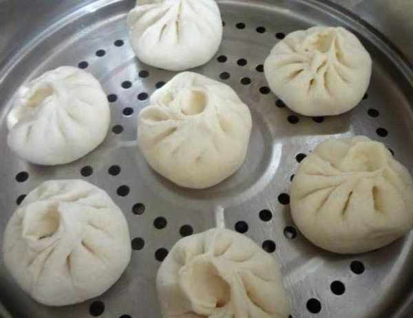 第八步:切成较大的面包,用圆面包手擀成圆形,在皮中央放上适量的馅料,捏紧折叠成面包。第九步:包子放一边,盖上一层笼布,发酵15-20分钟,锅里放冷水,再煮15-20分钟,关火焖5分钟,然后把它们拿出来吃。