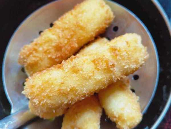 所需材料:牛奶、淀粉、白砂糖、鸡蛋、面粉、面包屑、食用油