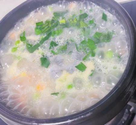 6.煮好后加入适量的盐调味,加入香油和葱花即可。